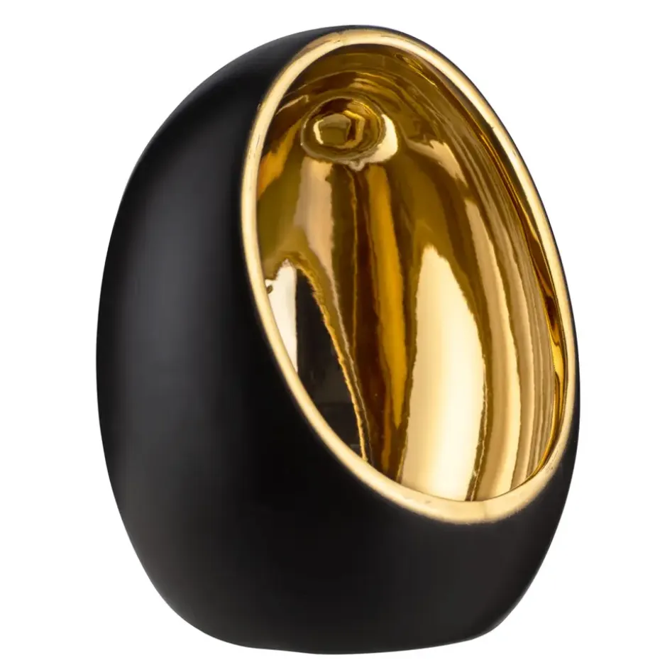 Ontdek deze stijlvolle waxinelichthouder Brygge. De buitenkant heeft een elegante zwarte afwerking, terwijl de binnenkant goudkleurig is voor een warme gloed. Gemaakt van hoogwaardig keramiek, met afmetingen van 12,5xØ9,5 cm. Voeg sfeer toe aan je huis met deze prachtige tafelaccessoire.