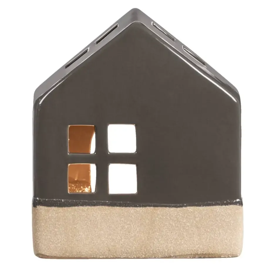 Creëer een gezellige sfeer in huis met deze antracieten waxinelichthouder in de vorm van een huis. Gemaakt van hoogwaardig keramiek, met afmetingen van 14x12x7 cm (hxbxd), is het een stijlvolle aanvulling op elke tafel. Voeg warmte toe aan je interieur en geniet van de knusheid.