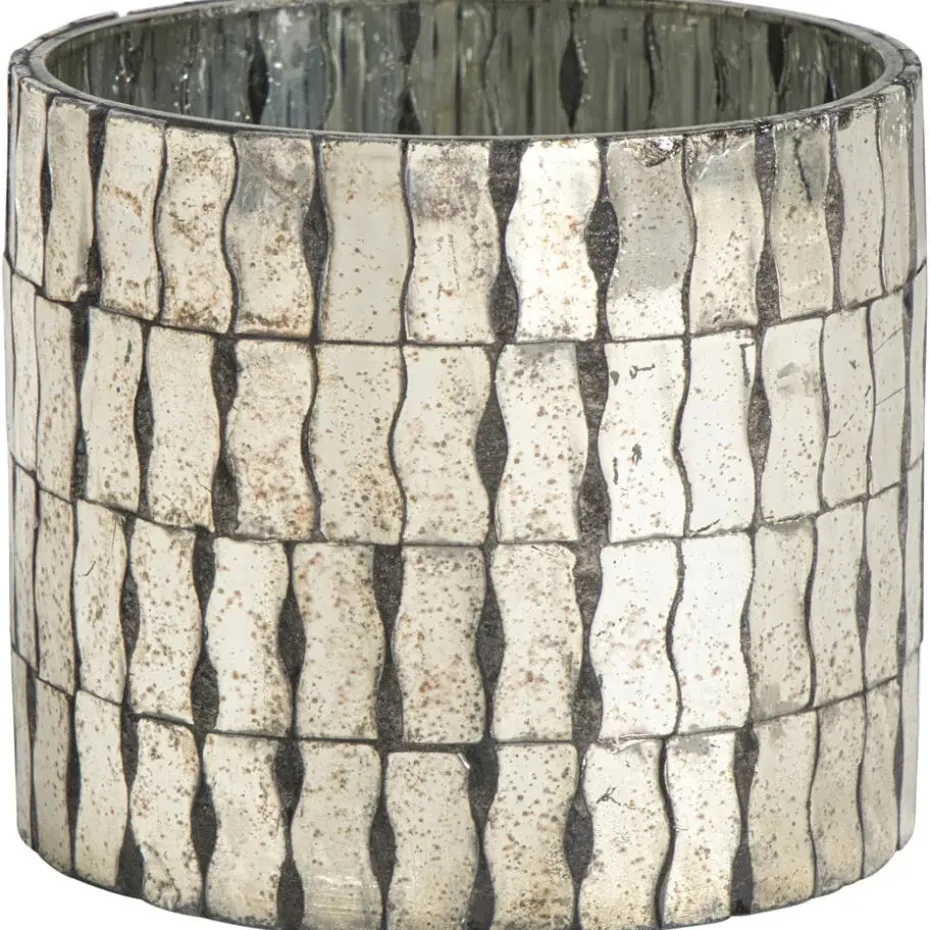 Deze waxinelichthouder van bruin glas, 10 cm hoog en 11 cm in diameter, is een sfeervolle toevoeging aan je interieur. De buitenzijde is bekleed met roestige spiegeltjes die zorgen voor een stoere, industriële uitstraling. Het bruine glas geeft een warme, zachte gloed wanneer er een kaarsje in brandt, wat zorgt voor een gezellige en intieme sfeer. Dankzij het stevige materiaal staat de houder stabiel en is hij geschikt voor standaard waxinelichtjes. Door het robuuste en unieke design krijgt je woonruimte een karakteristieke en stijlvolle look, perfect voor zowel dagelijks gebruik als speciale gelegenheden. Met deze kaarshouder voeg je eenvoudig een warme en authentieke sfeer toe aan elke kamer.
