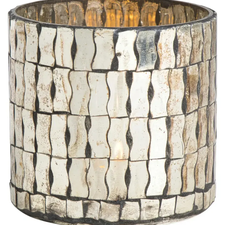 Deze waxinelichthouder van bruin glas is 11 cm hoog en heeft een diameter van 11 cm, wat zorgt voor een iets hogere, elegante uitstraling. De buitenzijde is voorzien van roestige spiegeltjes die het geheel een robuuste, industriële look geven. Het bruine glas verspreidt een warme, zachte gloed zodra er een kaarsje brandt, wat bijdraagt aan een gezellige en uitnodigende sfeer in huis. Dankzij het stevige materiaal blijft de houder stabiel staan en is hij geschikt voor standaard waxinelichtjes. Met dit unieke en stijlvolle ontwerp geef je jouw interieur een karaktervolle en sfeervolle touch, perfect voor zowel dagelijks gebruik als speciale momenten. Voeg met deze kaarshouder eenvoudig een warme en authentieke sfeer toe aan iedere ruimte.