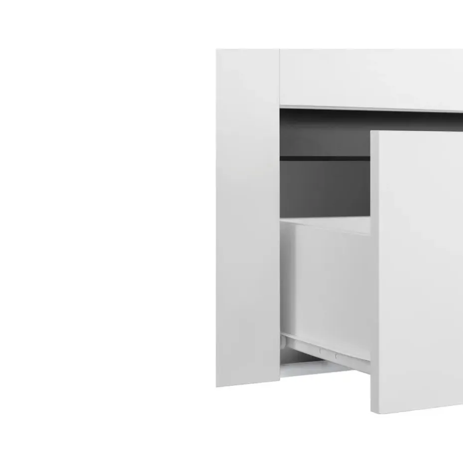 Het badmeubel met matte fronten geeft je badkamer een modern tintje. Achter de deur en klep met push-open functie zit handige opbergruimte voor verschillende gebruiksvoorwerpen. Het badmeubel heeft ook een ruime lade.