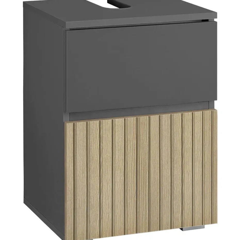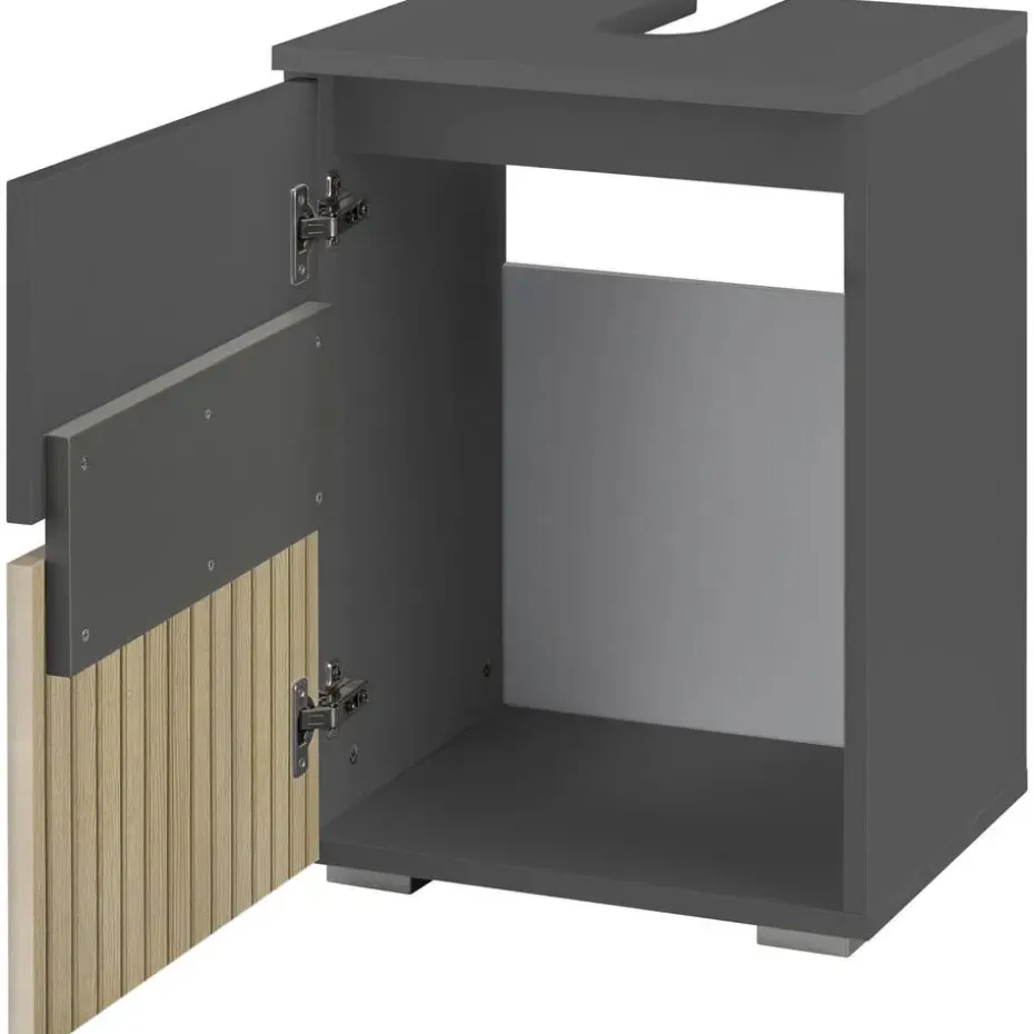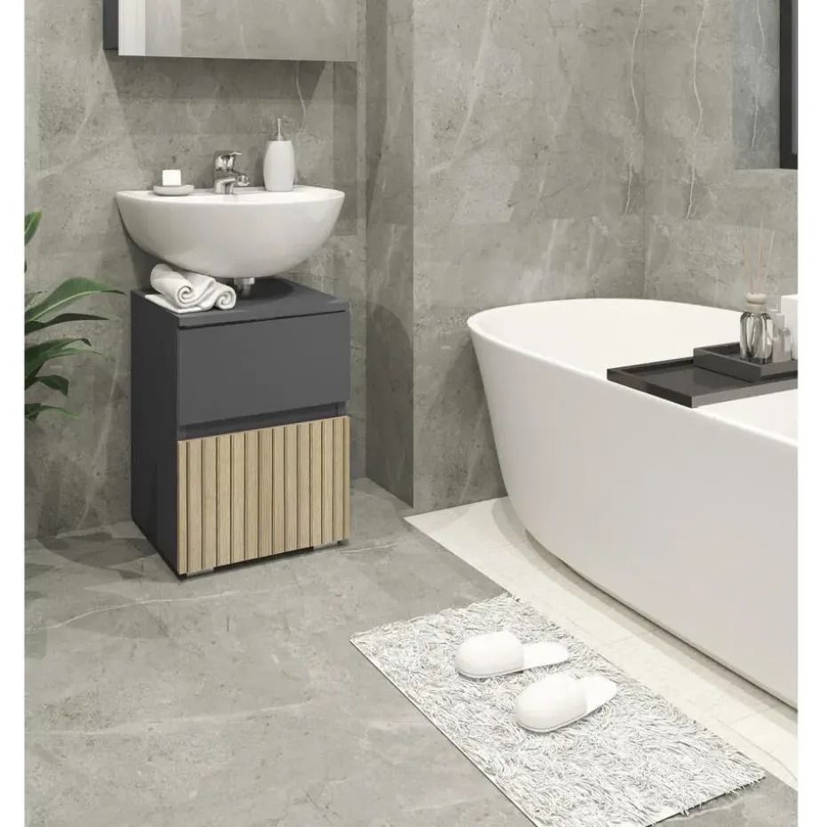 Deze onderkast is een slimme en ruimtebesparende opbergoplossing, ideaal voor kleine badkamers. Gemaakt van duurzaam spaanplaat met een MDF-achterpaneel, biedt hij uitstekende stabiliteit en langdurige prestaties. Dankzij het compacte ontwerp is hij praktisch zonder in te leveren op stijl.