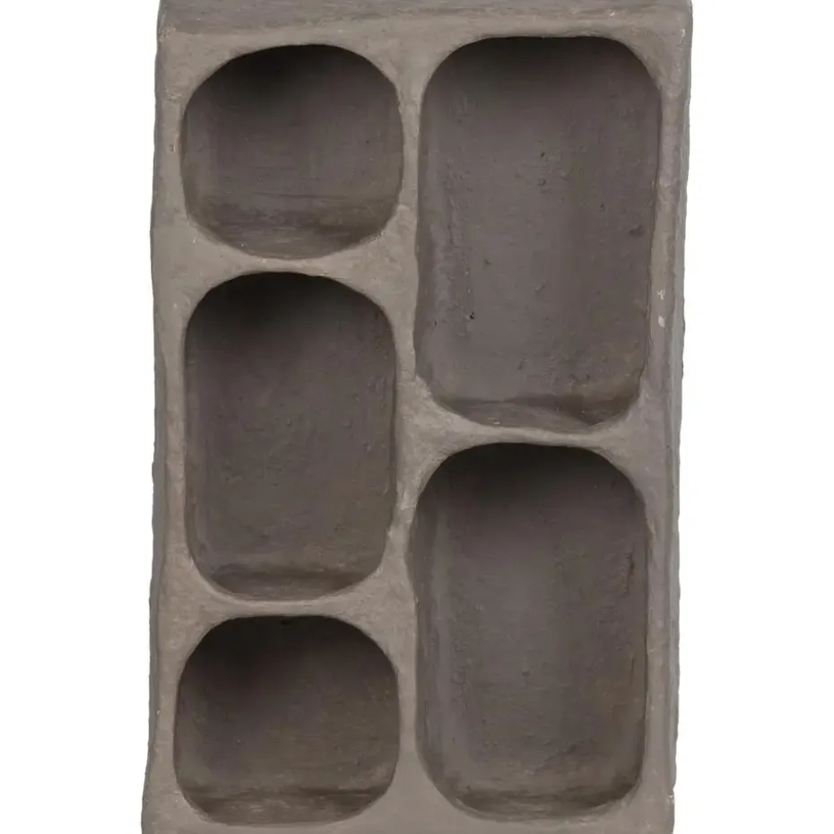 Elk item uit de papier maché serie is uniek. Uniek in formaat, afwerking en textuur. Dit komt doordat de papier maché items uit de collectie van het Nederlandse merk WOOOD volledig met de hand gemaakt worden. De Clay wandkast is een rechthoekige deco met vijf opbergvakken. Zorg ervoor dat de papier maché items niet in aanraking komen met water. De Clay wandkast is dus geschikt voor jouw favoriete items die een mooie podium verdienen.