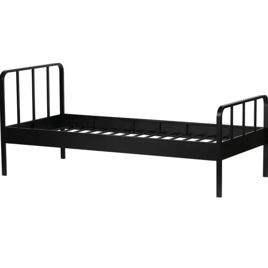 Het Mees kinderbed van het Nederlandse merk WOOOD is een stijlvolle toevoeging aan elke kinderkamer. Het moderne ontwerp met een strak metalen frame en een matzwarte poedercoating straalt zowel elegantie als duurzaamheid uit. Dit bed is ontworpen om jarenlang mee te gaan en past in vrijwel elke interieurstijl.