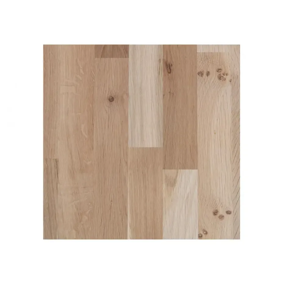 Dit rechthoekige tafelblad is onbehandeld en bestaat uit stroken eikenhout die d.m.v. een vingerlas houtverbinding zijn verlijmd. Het tafelblad heeft een lengte van 200 cm en een breedte van 90 cm. Het blad is 24 mm dik.