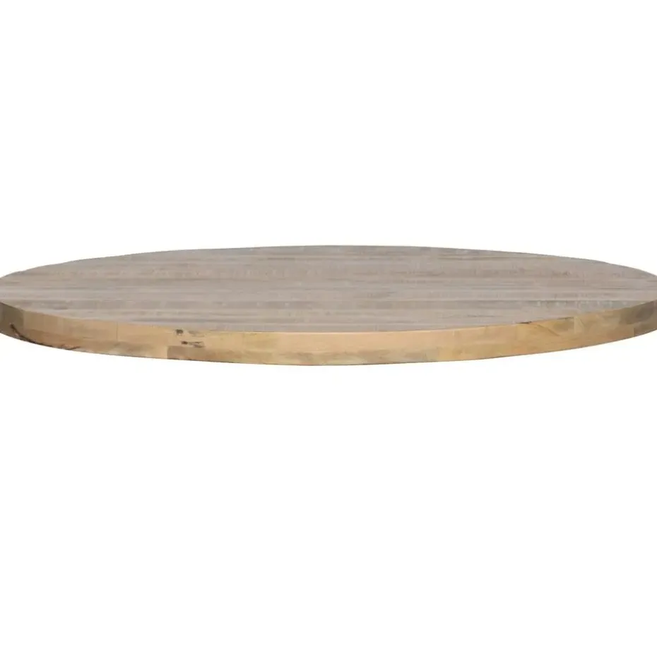 Dit ronde tafelblad is van mangohout en is afgewerkt met een lime wash finish waardoor het mangohout een soort white wash laagje krijgt. Het tafelblad heeft diameter van 120 cm. Het blad is 55 mm dik en is rondom voorzien van een opdikrand.