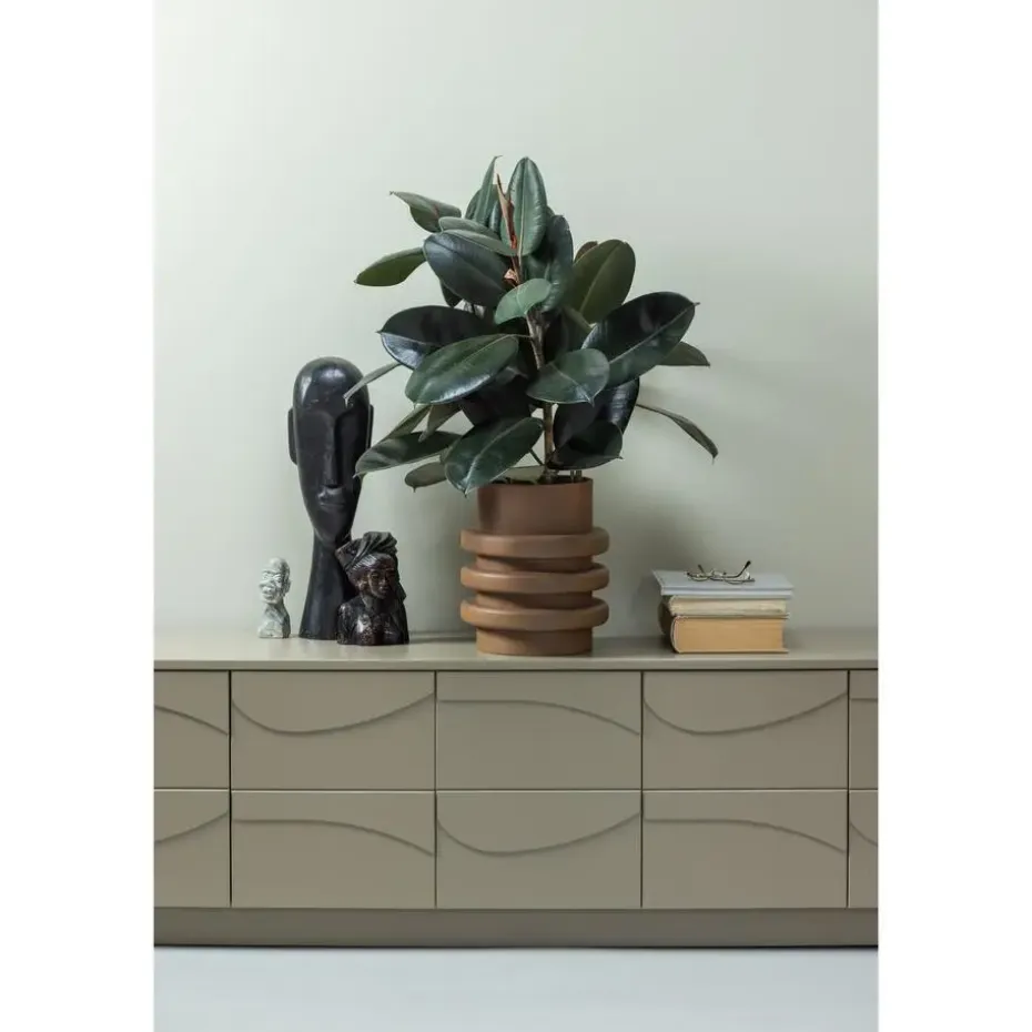 Organische vormen en een speels 3D-effect zijn de kenmerken van de laatste woontrends. De Teo opbergserie omarmt deze karaktertrekken volledig. Teo is ontworpen en geproduceerd voor de collectie van het Nederlandse interieurmerk WOOOD en is vervaardigd uit grenenhout met een mooie, aardse tint.