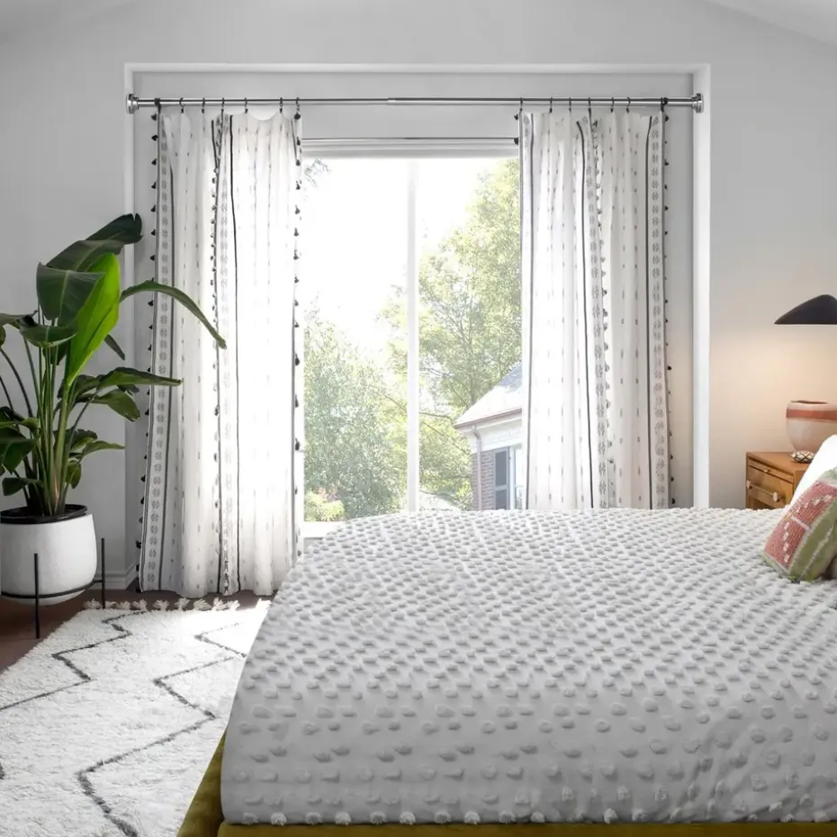 Precies daarvoor hebben we deze zelf opspannende gordijnroede met een slim ontwerp voor jou, waarmee je de roede eenvoudig tussen jouw raam- of deurkozijn kunt klemmen.