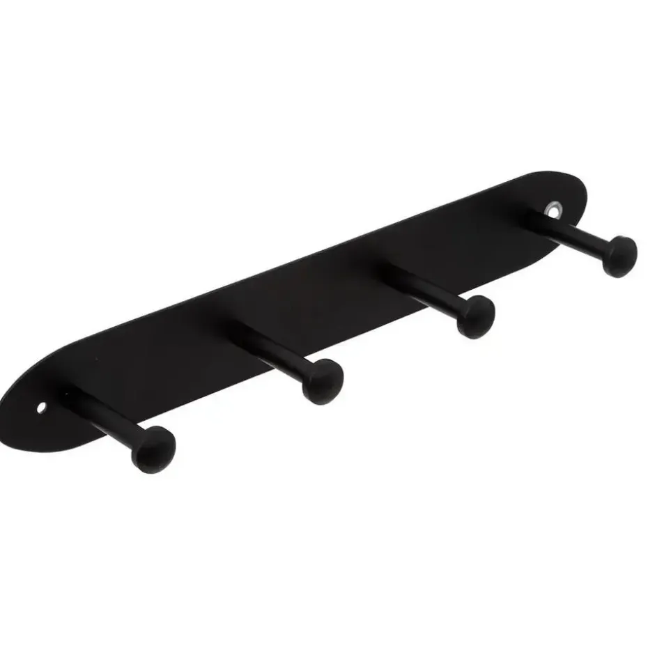 5Five Kapstok rek voor wand/muur - zwart - 4 ophanghaken - B35 cm