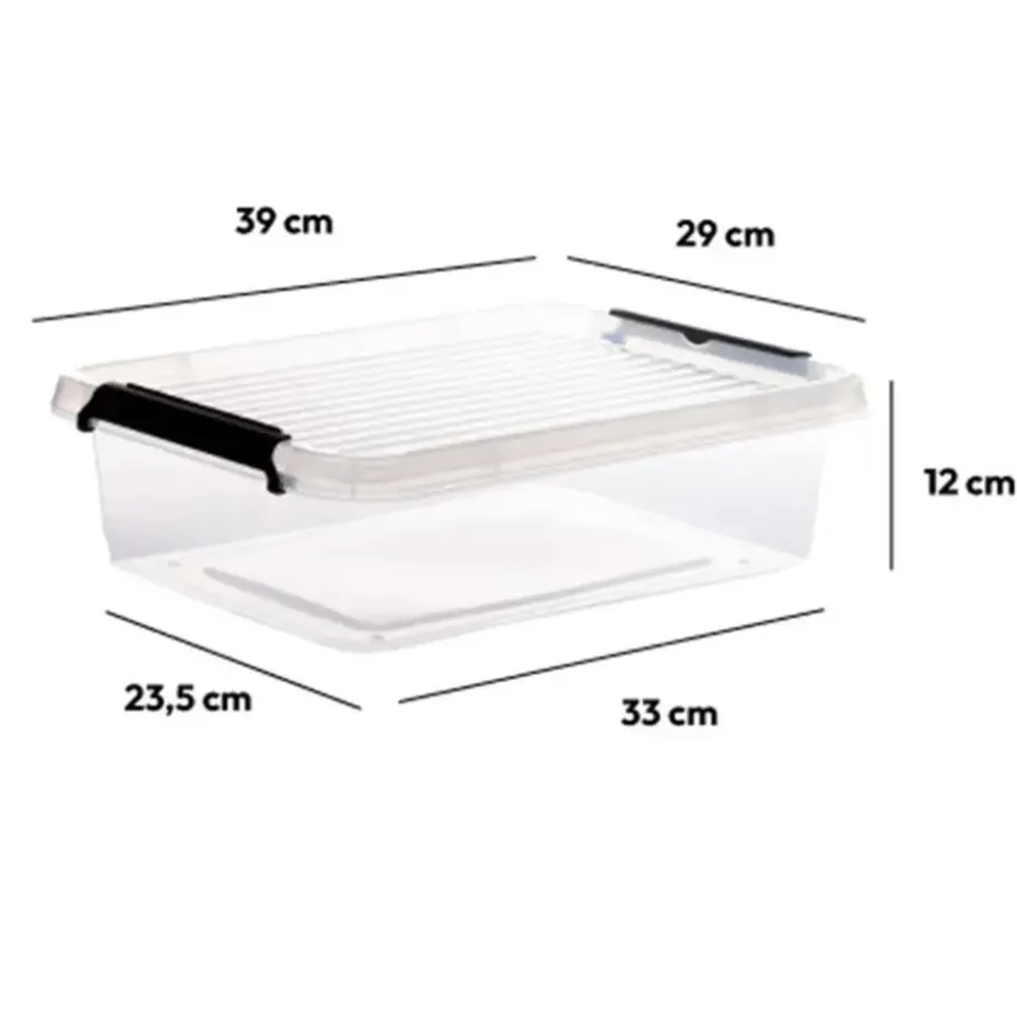 Opbergbox of opbergkist met deksel uit de Clip Box serie, is de ideale oplossing voor het veilig en droog opbergen van je spullen. Met een royale inhoud van 8,5 liter en een stevig ontwerp, is deze kunststof opbergdoos perfect voor diverse opberg oplossingen. De box zorgt ervoor dat je spullen goed beschermd blijven tegen vocht, stof en vuil. Afsluitbaar met clips.