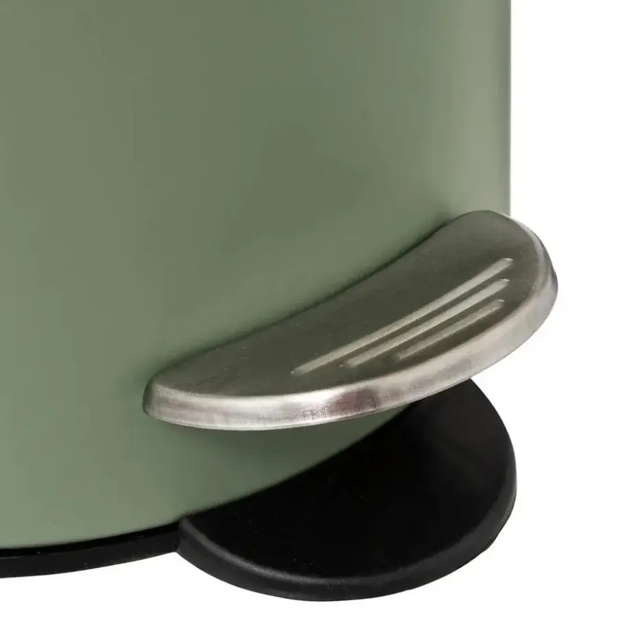 Compact formaat pedaalemmer in stijlvolle kakigroen uitvoering met bamboe accenten. De pedaalemmer komt inclusief uitneembare binnenemmer voorzien van een handvat om de prullenbak eenvoudig te legen. Handig in de badkamer en toilet. De pedaalemmer heeft een inhoud van 3 liter en is gemaakt van gepoedercoat metaal en bamboe hout. Met softclose sluiting. Formaat: 17 x 24 cm.