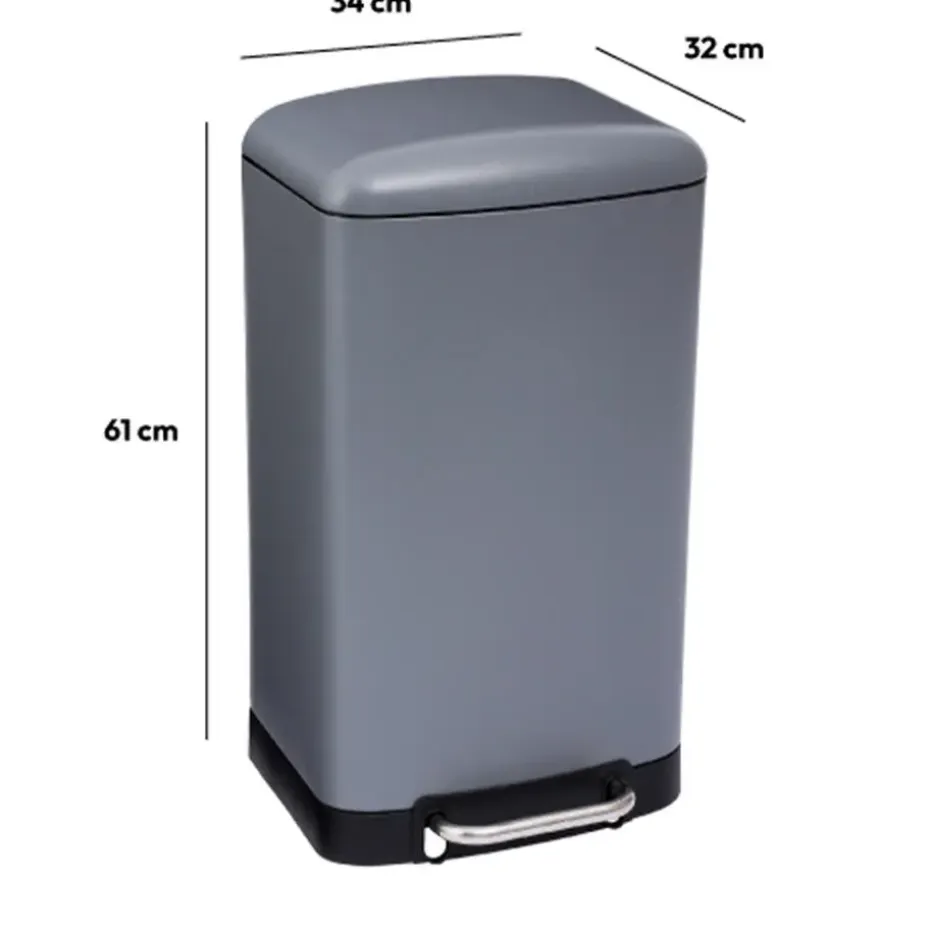 Prullenbak/pedaalemmer in een mooie kleur grijs, gemaakt van rvs metaal en een inhoud van 30 liter. Geschikt voor in de keuken en kantoor. Afmetingen: 34 x 32 x 61 cm. Sluiting is met het soft close principe. Model: Ariane. De pedaalemmer heeft een uitneembare, makkelijk te reinigen binnenbak die voorzien is van een handgreep. Gewicht: 4.1 kilo. Aanbevolen vuilniszak formaat is 50 liter.