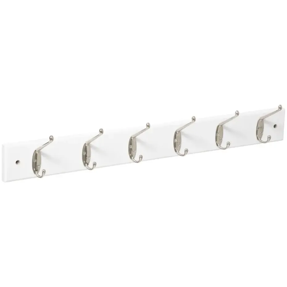 5Five kapstok rek voor aan de muur/wand in de kleur wit. Ideaal om je jassen en hoofddeksels aan op te hangen, dankzij de 6 ophanghaken/knoppen is er genoeg ruimte om diverse stukken op te hangen. Afmeting: 58 x 9 cm. Materiaal: MDF/ijzer. Wandkapstokken.
