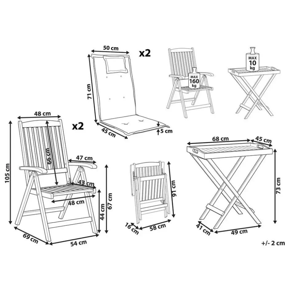 Belangrijkste eigenschappen: Rugleuning verstelbaar in 6 posities, Praktische touwtjes voor gemakkelijke bevestiging aan de zitting, Perfect gevormde armleuningen, Gemaakt van natuurlijk resistente materialen, Ruimtebesparend inklapbaar