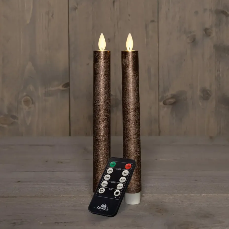 Anna's Collection LED dinerkaarsen - 2x - brons - 23 cm