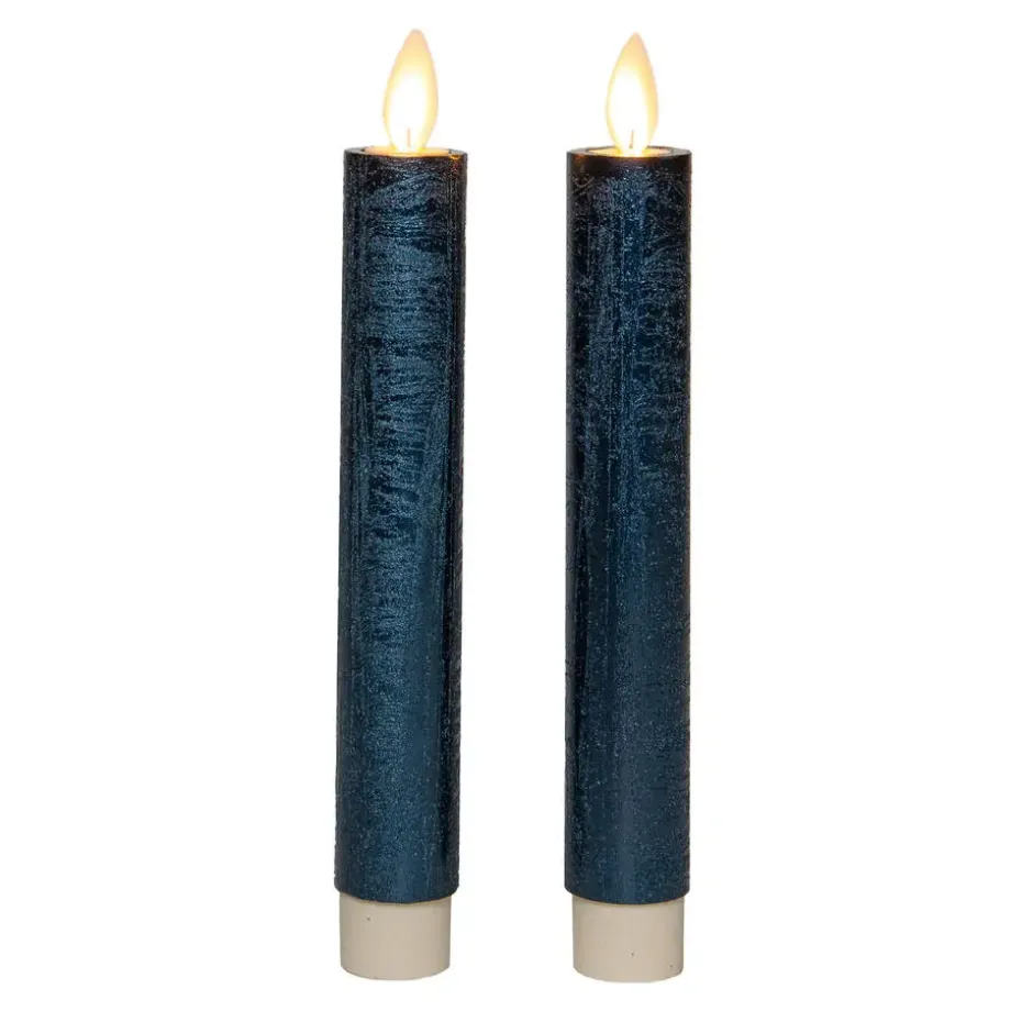 LED dinerkaarsen van 18 cm in metallic blauw. Voeg een sfeer toe aan je diner met deze dinerkaarsen in de kleur metallic blauw. Met een hoogte van 18 cm en LED bewegende vlam, zorg je voor een warme en elegante sfeer. Gemakkelijk te bedienen met de meegeleverde afstandsbediening, inclusief dimmer en timer functie. 1 AA batterijen per kaars (niet inbegrepen). Laat de betovering van kaarslicht zonder zorgen om open vuur je tafel verfraaien met deze stijlvolle LED dinerkaarsen.