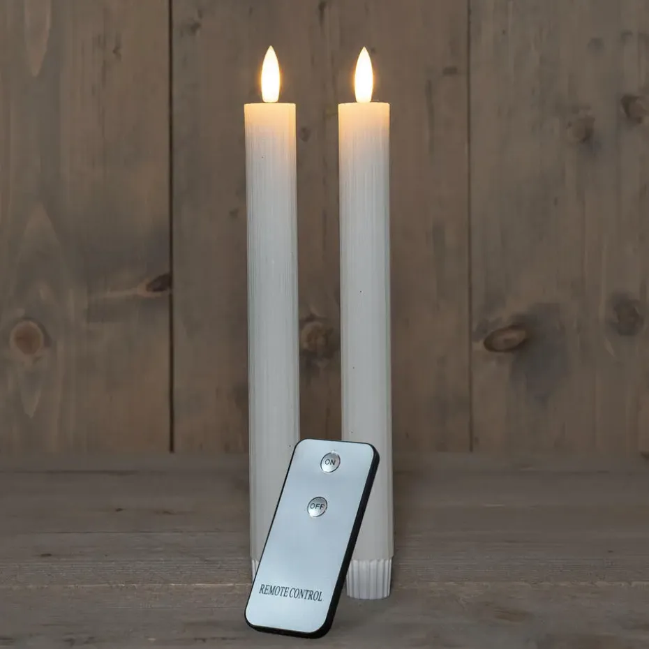 Anna’s Collection Led dinerkaarsen – 2x st – wit – ribbel – 23 cm