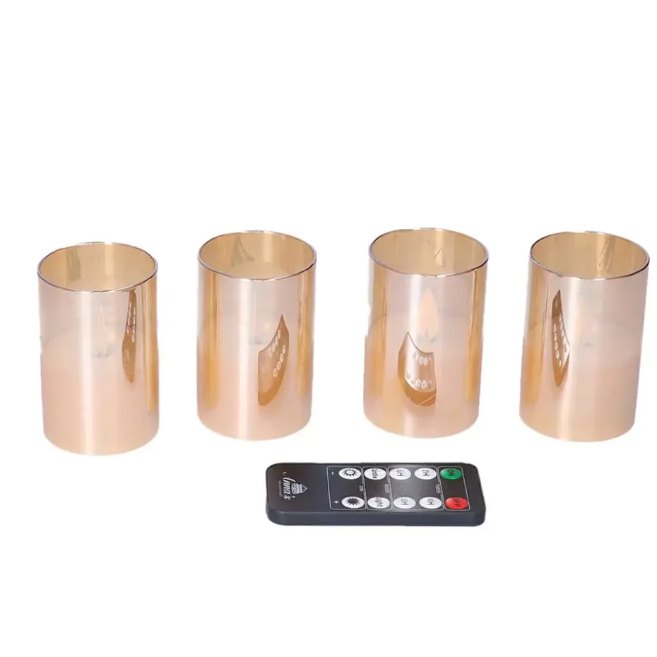 Oplaadstation standaard met 4x stuks LED kaarsen in glazen kaarsenhouders. Creeer een warme en sfeervolle ambiance met deze set van LED kaarsenhouders in oranje/amberkleurig glas. De set wordt geleverd met een oplaadstation en een handige afstandsbediening. De LED theelichten zijn oplaadbaar, waardoor je geen losse batterijen nodig hebt. De stijlvolle glazen houders hebben een formaat van 7,5 x 5 cm per stuk, perfect voor elke tafelsetting, feest of gezellige avond thuis.