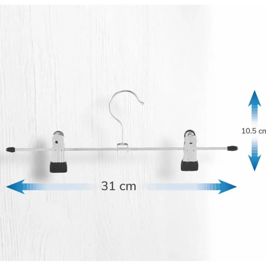 De broekhangers zijn verstelbaar in de breedte en dus geschikt voor het ophangen van broeken en rokken maar ook kleine zaken zoals handdoeken, sjaals, handschoenen, sokken, enz. De kleerhangers met knijpers zijn klein en nemen dus weinig ruimte in beslag.