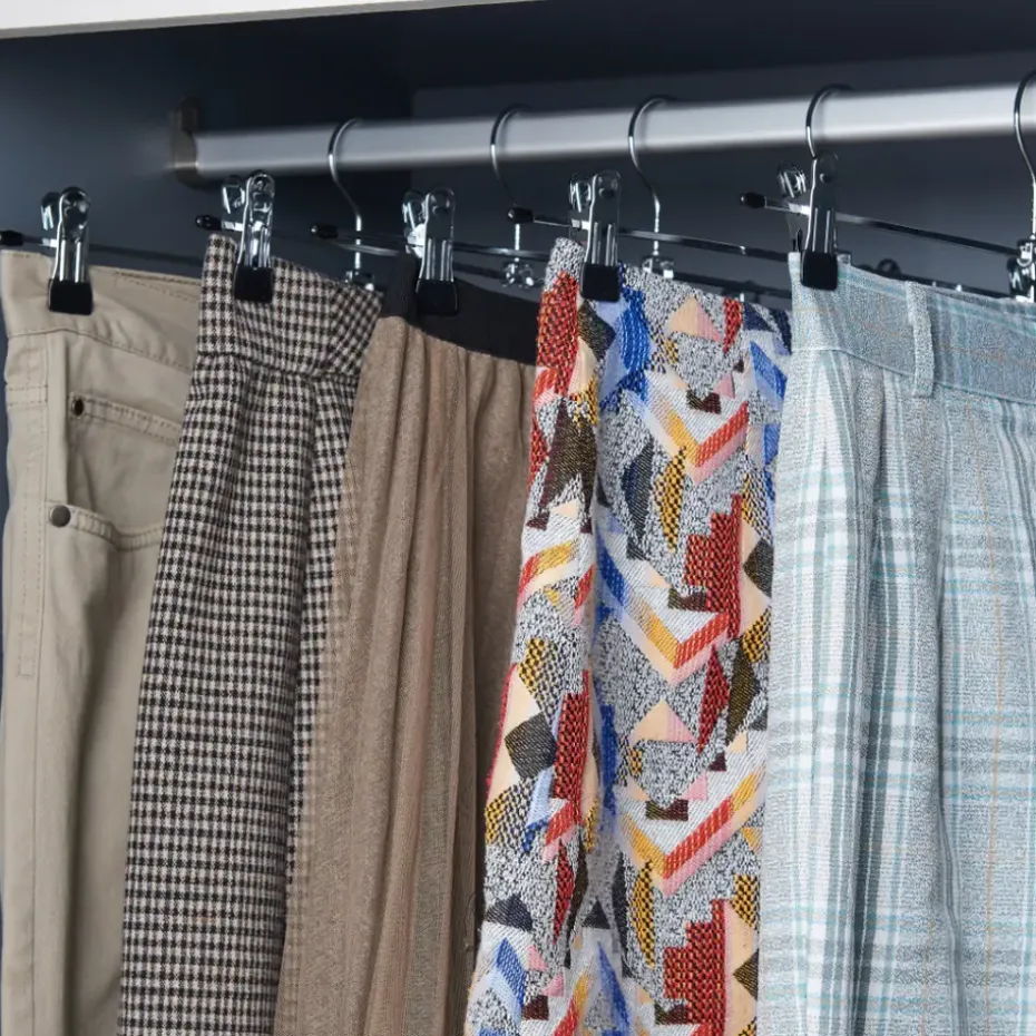 Deze kledinghangers zijn gemaakt uit verchroomd metaal en hebben een PVC laag aan de klem. Dankzij de antisliplaag zullen uw kleren mooi blijven hangen, zonder plooien of kreuken. Als dat niet handig is!