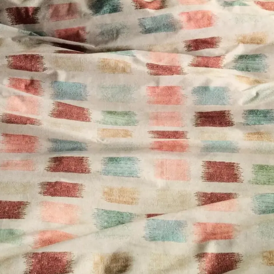 ✔ Gestreept design met ikatstructuur – geeft diepte en karakter aan je slaapkamer