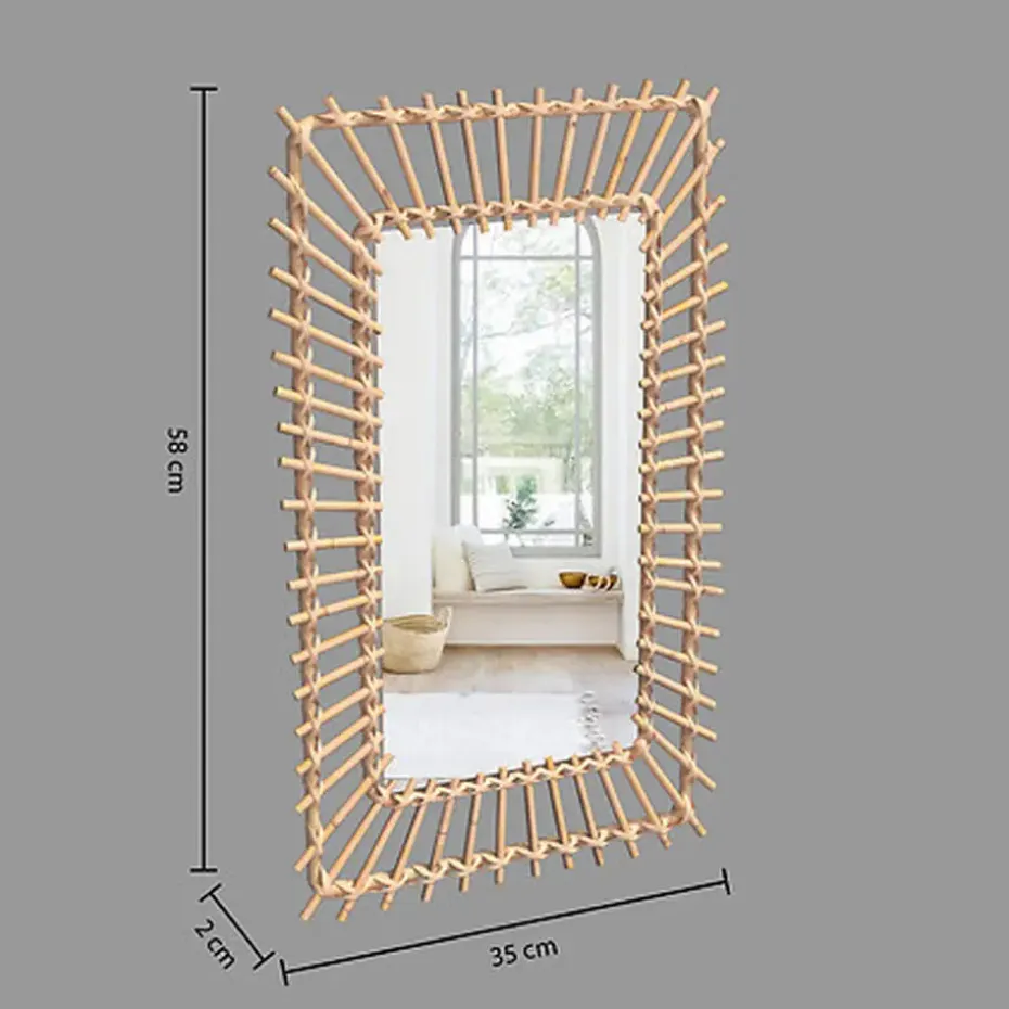 Haal de zomerse vibes in huis met wandspiegel Leonie! Deze stijlvolle langwerpige spiegel in Boho/ibiza-stijl is een echte eyecatcher. De omlijsting van lichtbruin rotan straalt warmte en natuurlijke charme uit, perfect voor een ontspannen en gezellige sfeer. Met een afmeting van 35 x 58 cm is deze spiegel perfect als blikvanger in de hal, slaapkamer of woonkamer. Laat je interieur stralen met de warme en ontspannen vibes van dit unieke design. Met wandspiegel Leonie haal je dat ontspannen Ibiza-gevoel in huis een vleugje zon, strand en stijl in je interieur! Laat je interieur stralen met een vleugje Ibiza in huis, voor dat eindeloze zomergevoel!