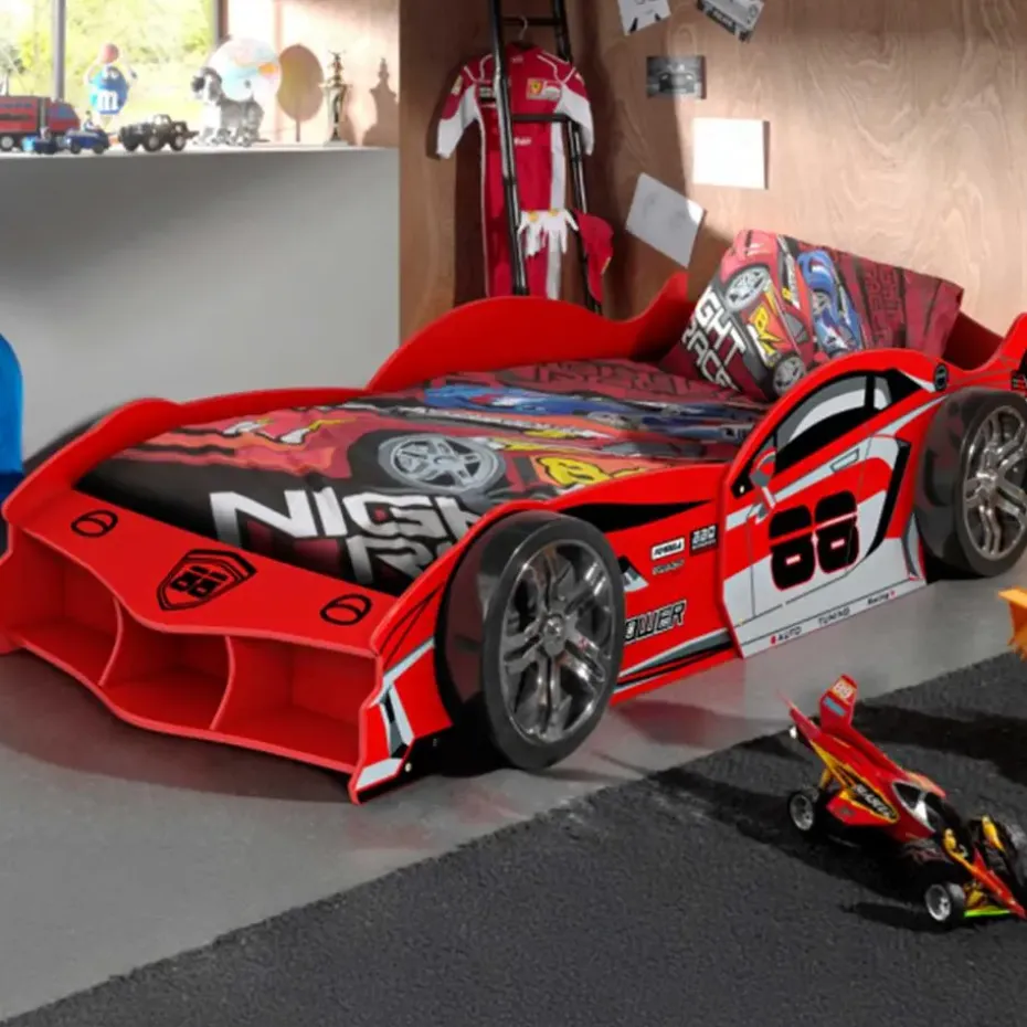 Het Max autobed 90×200 cm is een stijlvolle en leuke toevoeging aan elke kinderkamer. Met zijn strakke Belgische design is dit bed niet alleen een comfortabele slaapplek voor je kind, maar ook een speels middelpunt in de kamer. De afmeting van het bed van 90×200 cm is perfect voor opgroeiende kinderen, zodat ze genoeg ruimte hebben om zich uit te rekken en te ontspannen. Vooraan zijn drie open opbergvakken voorzien voor bijvoorbeeld boeken of speelgoed. Met zijn duurzame constructie uit MDF en opvallende ontwerp zal het Max autobed zeker in de smaak vallen bij zowel kinderen als ouders. Voeg vandaag nog wat spanning toe aan de slaapruimte van je kind met dit unieke en functionele bed!