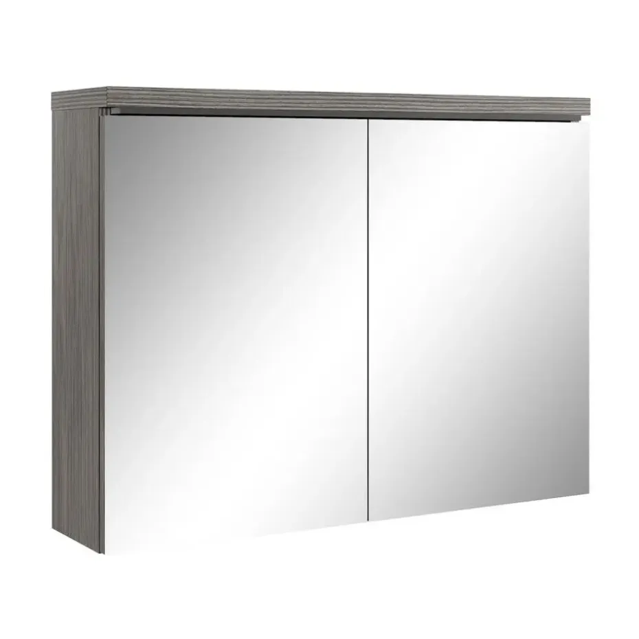 Spiegelkast Paso is een kast voor in de badkamer uitgevoerd met twee spiegeldeuren en veel bergruimte. De kast is gemaakt van hoge kwaliteit spaanplaat en vanwege zijn strakke afwerking ook makkelijk schoon te maken. De deuren van de kast zijn aan de buitenzijdes uitgevoerd met twee spiegels. De kast heeft aan de binnnekant geen spiegels. De spiegelkast is uitgevoerd in grijs eiken.