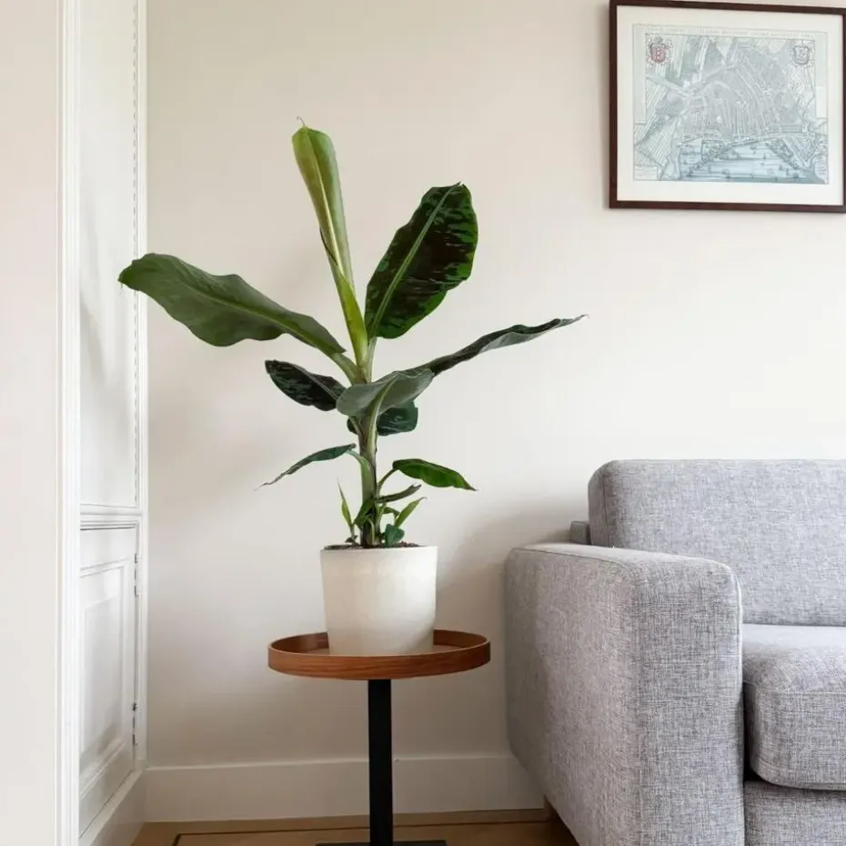 De Musa bestaat voor ongeveer 80% uit water en houdt daarom van een flinke slok water. Geef de plant dus regelmatig water en zorg ervoor dat de grond nooit uitdroogt. Musa houdt ook van regen. Trakteer het daarom op een zomerregen. Je kunt de plant ook regelmatig besproeien. Daarnaast houdt de Musa van licht en warmte, zet hem dus niet speciaal in de schaduw. Minimaal 5 uur direct zonlicht per dag bevordert de groei. De bladeren kunnen op een gegeven moment bruine randen krijgen. Hierna sterft het hele blad af. Dit is een natuurlijk proces, dus wees hier niet ongerust over. Op deze manier vervangt de Musa oude bladeren door nieuwe bladeren bovenaan de plant.