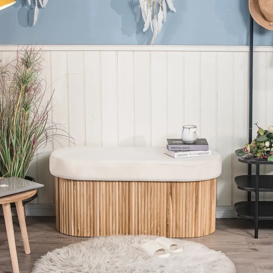 De BAOTSU Scandinavische designbank met opbergruimte heeft alles wat nodig is om uw interieur te verfraaien. Of het nu in uw slaapkamer, kantoor, woonkamer of hal is, het zal zijn plek vinden. De ronde zitting, gevuld met premium stof en een superieure dichtheid schuim, biedt een hoogwaardig comfort. De eenvoudige en praktische opbergruimte stelt u in staat om allerlei soorten voorwerpen neer te leggen. De bank is gemakkelijk te onderhouden, een vochtige doek is voldoende om schoon te maken.