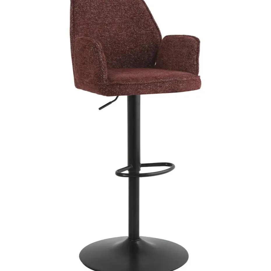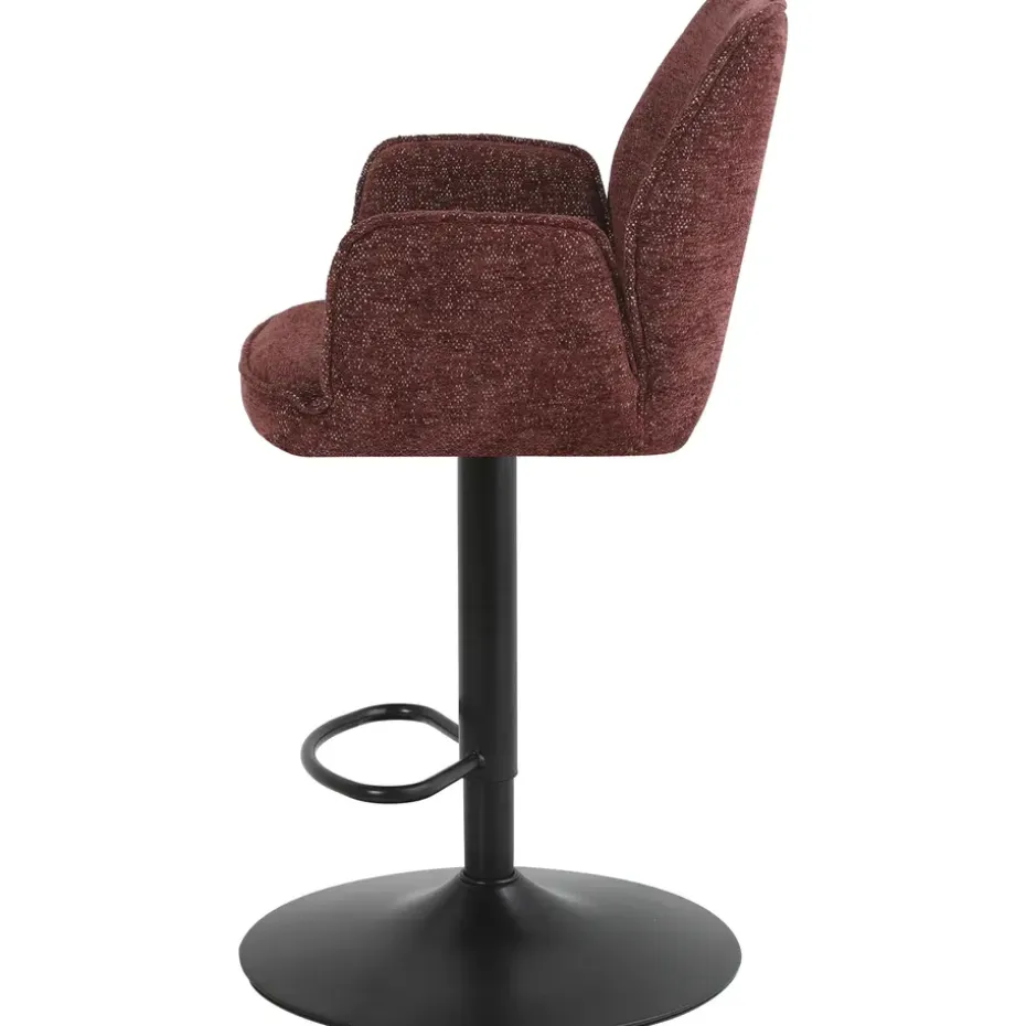 Barkruk Raffy is een tijdloze barkruk die mooi aansluit in jouw interieur. De kruk is bekleed met een heerlijke stof in de kleur wijnrood. Hij staat stevig op een verstelbare poot van zwart metaal en is verstelbaar naar verschillende hoogtes. Door het hoog zitcomfort van deze barkruk kun je uren zitten aan je bar of kookeiland. De barkruk is ook voorzien van armleuningen, zo kan je ook comfortabel dineren. Door de zachte stof en de kleur, past Raffy perfect in ieder interieur.