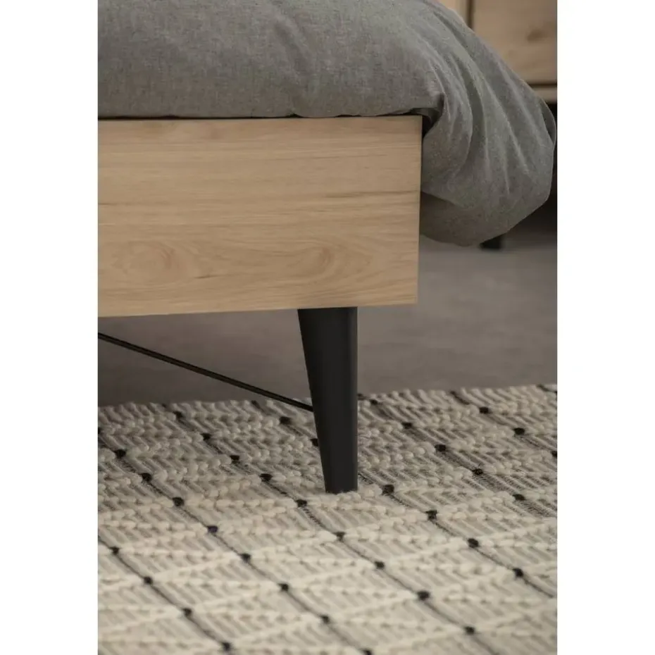Bed Kansas is eiken van kleur en zorgt daardoor voor rust in elke slaapkamer. Dit bed is geschikt voor een matras van 180x200cm groot, heeft een strak design en is gemaakt van spaanplaat. Het bed past door zìjn strakke design ideaal in verschillende interieurstijlen.