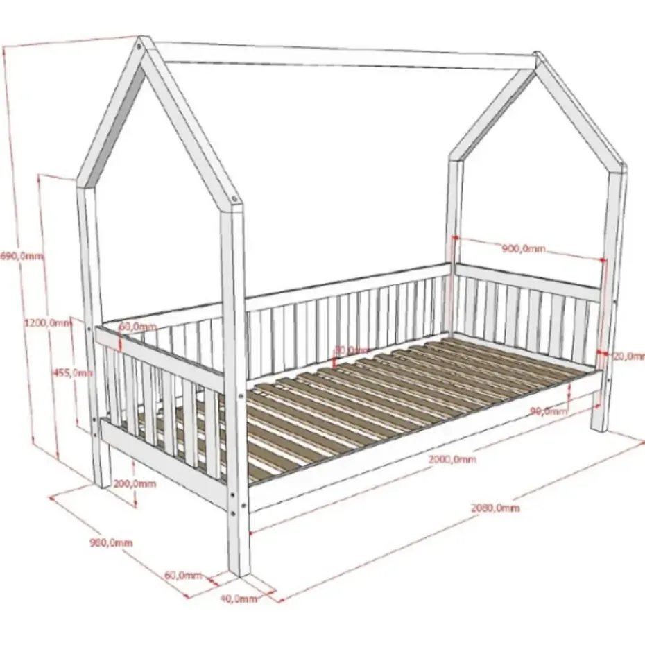Gun jouw kind zijn of haar eigen huisje met dit bedhuisje Home. Het bed is gemaakt uit massief dennenhout en is uitgerust met een lattenbodem van 90x200cm. Het hekje langs drie kanten kan dienen als uitvalbeveiliging, en hierdoor kan je het bed ook gebruiken als zitbank. Ga samen met je zoon of dochter nog op zoek naar enkele leuke accessoires of een mooie lichtslinger en personaliseer jouw nieuwe bed volledig naar wens! Optioneel kan je bij dit bed nog een handige lade bestellen voor meer opbergruimte. De matras is bij dit bed niet inbegrepen.