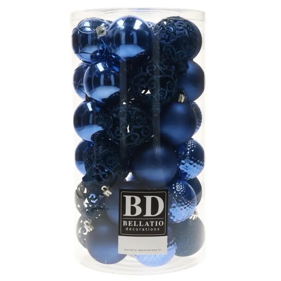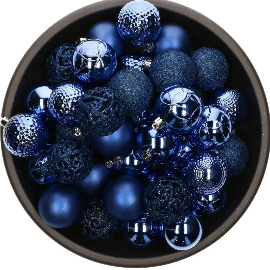 Set van 37x stuks kerstballen in de kleur kobalt blauw. Breng een stijlvolle en feestelijke sfeer in huis met deze set van kerstballen. Deze kerstballen zijn gemaakt van kunststof en hebben een diameter van 6 cm, wat ze ideaal maakt voor zowel kleine als grote kerstbomen. De set biedt een prachtige variatie van een mix van glanzende, matte en glitter kerstballen. Daarnaast bevat het unieke ontwerpen zoals golf-, cirkel- en open kerstballen, waardoor elke bal een bijzondere toevoeging is aan je kerstversiering. Deze mix zorgt voor een dynamische en veelzijdige uitstraling van je boom. De kerstballen worden standaard geleverd met ophanglintjes, maar voor extra gemak adviseren wij om kerstbalhaakjes mee te bestellen. Zo hang je kerstboomdecoratie nog steviger en veiliger.