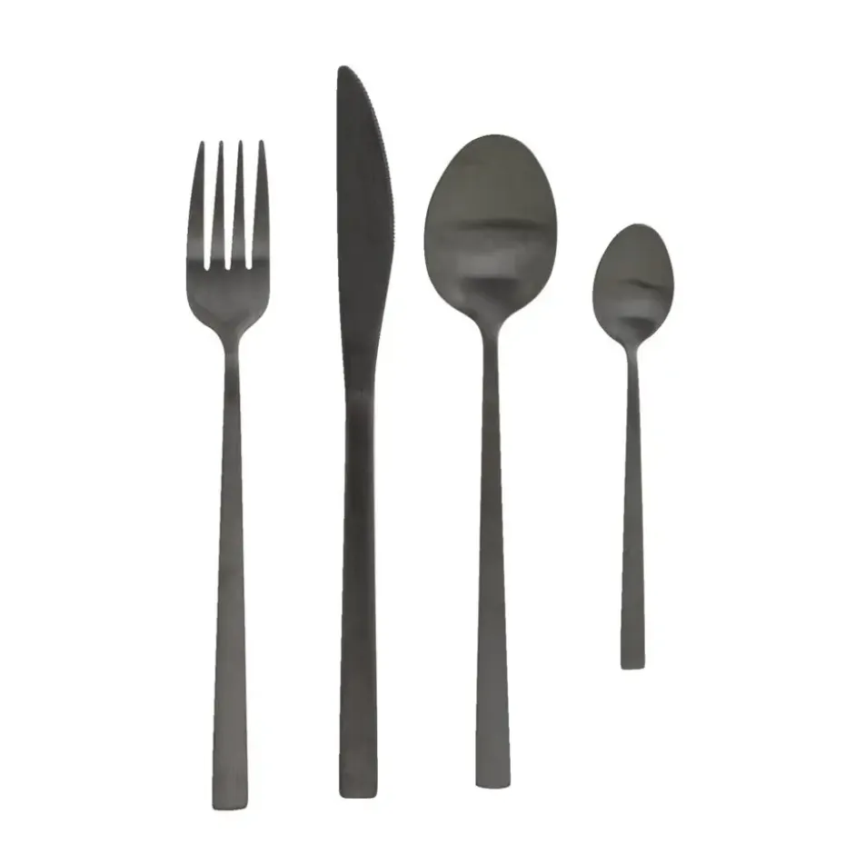 Creëer een sfeervolle tafelsetting met deze prachtige zwarte bestekset, geschikt voor 4 personen. Deze 16-delige set is gemaakt van RVS met een matte afwerking. Het bestek is niet vaatwasserbestendig, schoonmaken doe je dus met een handwasje. Voeg luxe toe aan elke maaltijd met dit stijlvolle en functionele bestek. Of het nu voor dagelijks gebruik is of voor speciale gelegenheden, deze set zal zeker indruk maken. Maak jouw tafel compleet met dit prachtige zwarte bestek voor een onvergetelijke eetervaring.