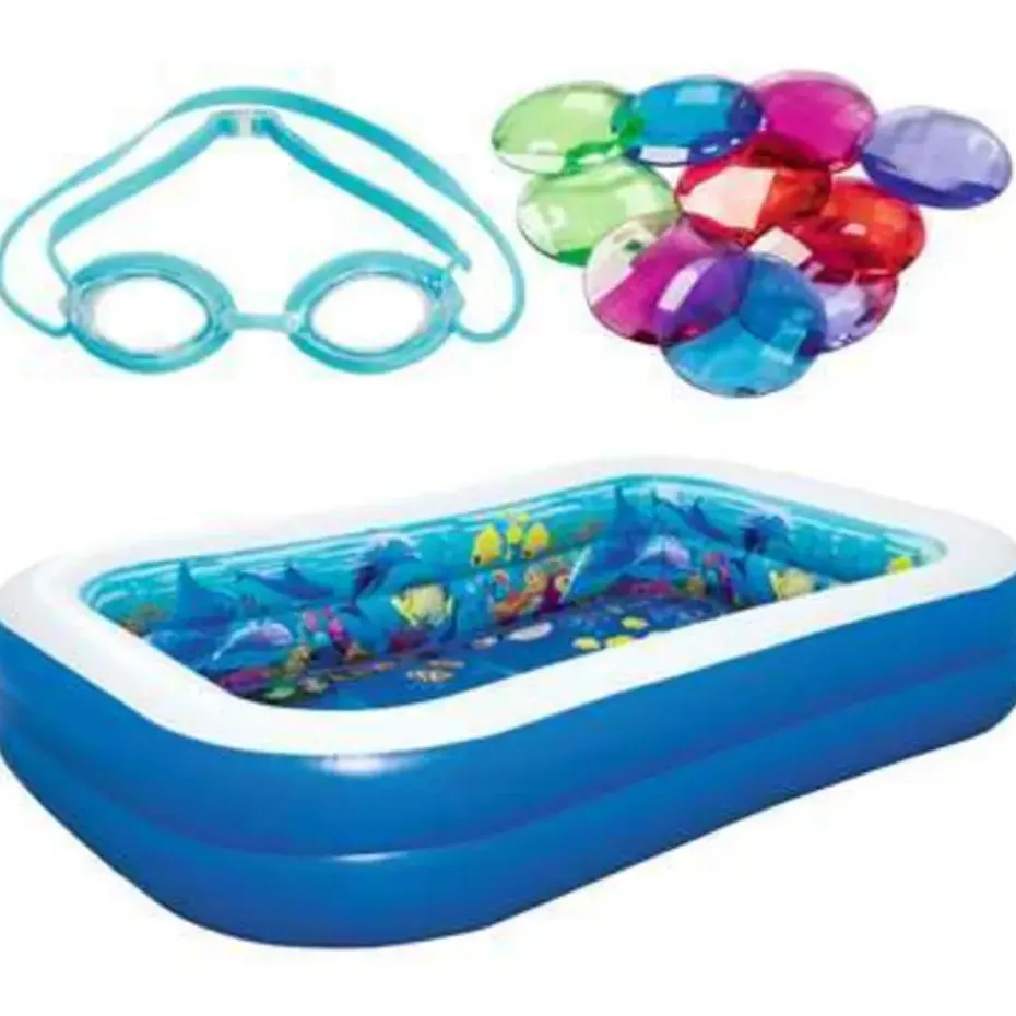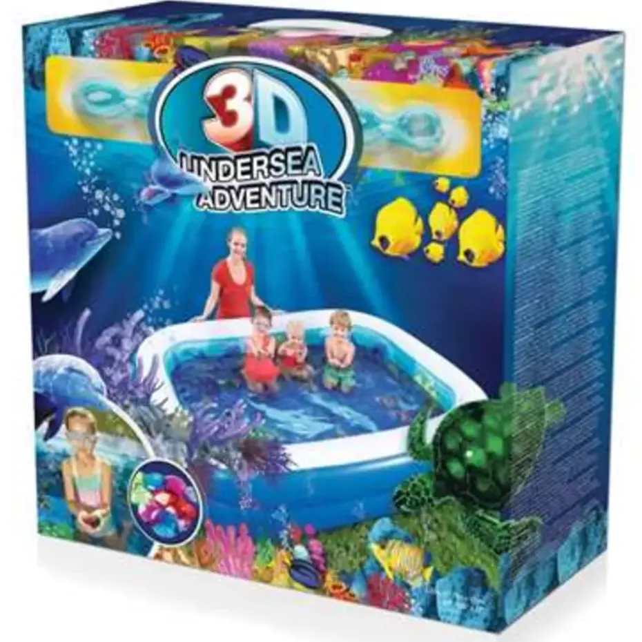 Je kinderen zullen een magisch onderwateravontuur beleven met dit Bestway opblaasbare zwembad 54177. Dankzij de stevige constructie van hoogwaardig vinyl met I-balkconstructie is dit zwembad stevig en duurzaam. Het heeft een inhoud van maximaal 778 liter water en is uitgerust met extra brede zijwanden voor meer stabiliteit. Het zwembad kan snel opgeblazen en geleegd worden. Zet de 3D-bril op en verwonder je over de prachtige onderwaterwereld met kristallen schatten! De levering bevat 1 zwembad, 2 3D-brillen en 1 pakje kristallen.