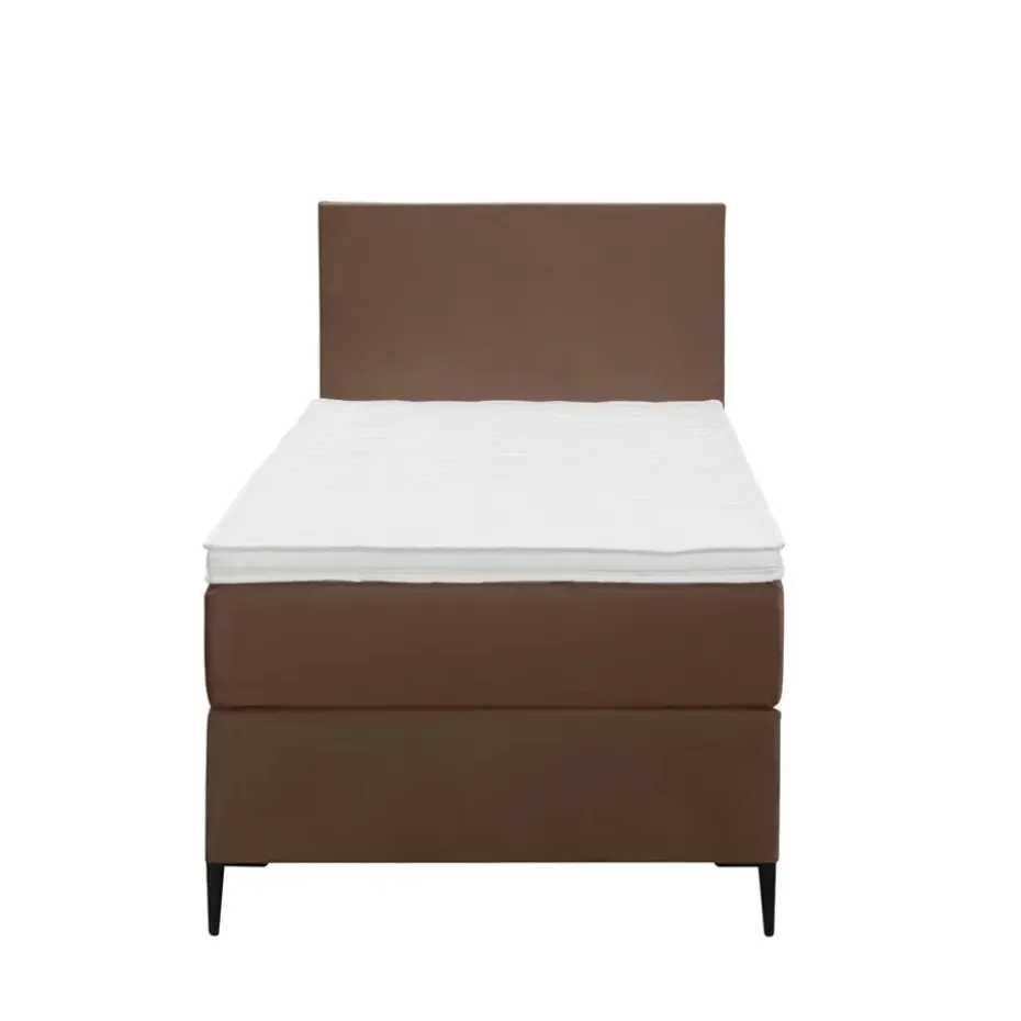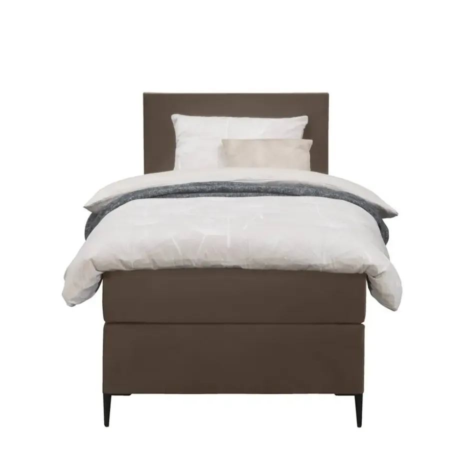 Boxspring Liv is een boxspring met een afmeting van 90×200 cm. Deze prachtige boxspring is bekleed met een velvet bruine stof en heeft een strakke uitstraling met een egaal hoofdbord. De Liv egaal is uitgerust met een pocketveringmatras en daarnaast ook nog een koudschuim topdekmatras voor extra comfort. Het pocketveringmatras is omkeerbaar, bestaande uit zowel een medium- als een stevige kant. Hierdoor kun je zelf kiezen wat voor jou het meest comfortabel ligt.