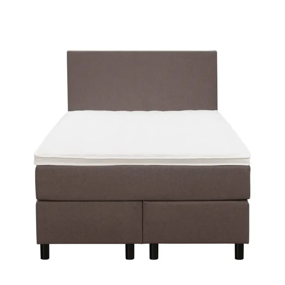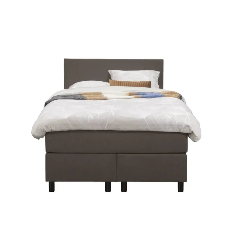 Boxspring Liv is een boxspring met een afmeting van 120×200 cm. Deze prachtige boxspring is bekleed met een grof geweven donkerbruine stof en heeft een strakke uitstraling met een egaal hoofdbord. De Liv egaal is uitgerust met een pocketveringmatras en daarnaast ook nog een koudschuim topdekmatras voor extra comfort. Het pocketveringmatras is omkeerbaar, bestaande uit zowel een medium- als een stevige kant. Hierdoor kun je zelf kiezen wat voor jou het meest comfortabel ligt.