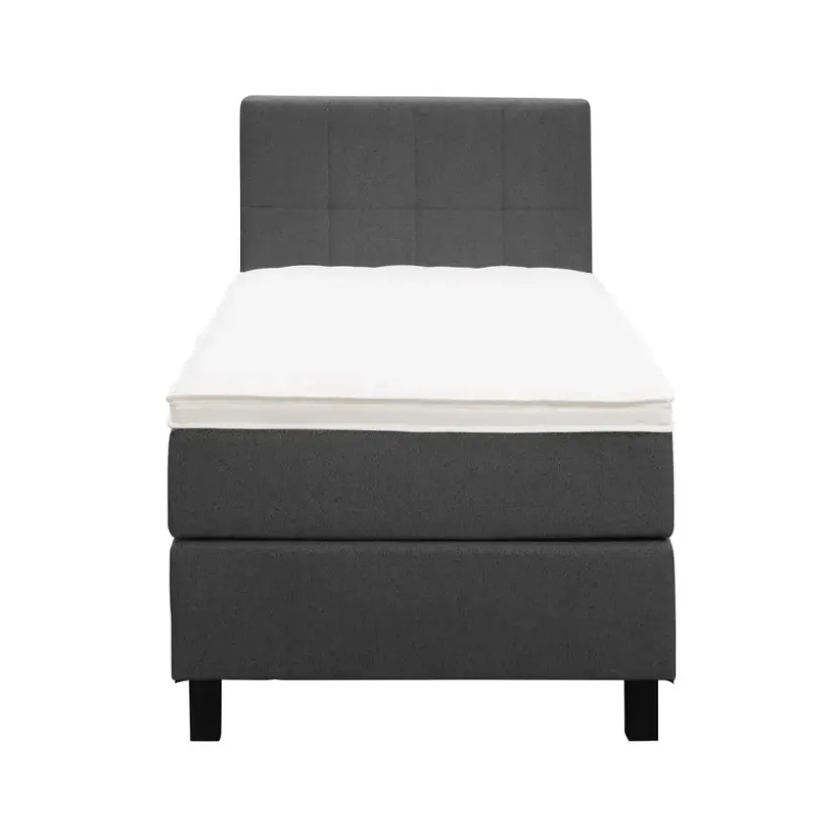 Boxspring Liv is een boxspring met een afmeting van 90×200 cm. Deze prachtige boxspring is bekleed met een grof geweven antraciete stof en heeft een landelijke uitstraling met een geblokt hoofdbord. De Liv geblokt is uitgerust met een pocketveringmatras en daarnaast ook nog een koudschuim topdekmatras voor extra comfort. Het pocketveringmatras is omkeerbaar, bestaande uit zowel een medium- als een stevige kant. Hierdoor kun je zelf kiezen wat voor jou het meest comfortabel ligt.