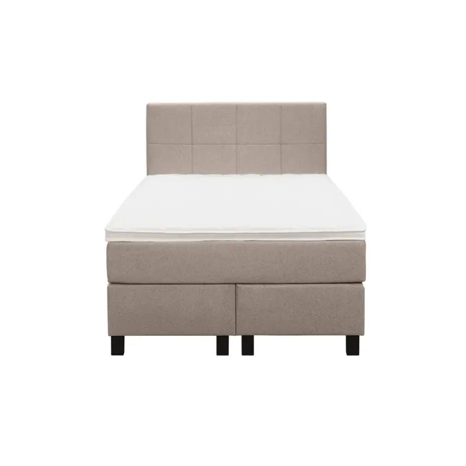 Boxspring Liv is een boxspring met een afmeting van 120×200 cm. Deze prachtige boxspring is bekleed met een grof geweven beige stof en heeft een landelijke uitstraling met een geblokt hoofdbord. De Liv geblokt is uitgerust met een pocketveringmatras en daarnaast ook nog een koudschuim topdekmatras voor extra comfort. Het pocketveringmatras is omkeerbaar, bestaande uit zowel een medium- als een stevige kant. Hierdoor kun je zelf kiezen wat voor jou het meest comfortabel ligt.