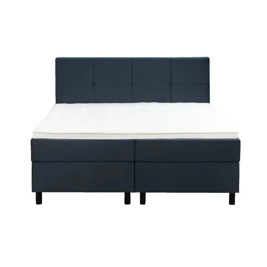 Boxspring Liv is een boxspring met een afmeting van 180×200 cm. Deze prachtige boxspring is bekleed met een velvet blauwe stof en heeft een landelijke uitstraling met een geblokt hoofdbord. De Liv geblokt is uitgerust met twee pocketveringmatrassen en daarnaast ook nog een koudschuim topdekmatras voor extra comfort. Het pocketveringmatras is omkeerbaar, bestaande uit zowel een medium- als een stevige kant. Hierdoor kun je zelf kiezen wat voor jou het meest comfortabel ligt.