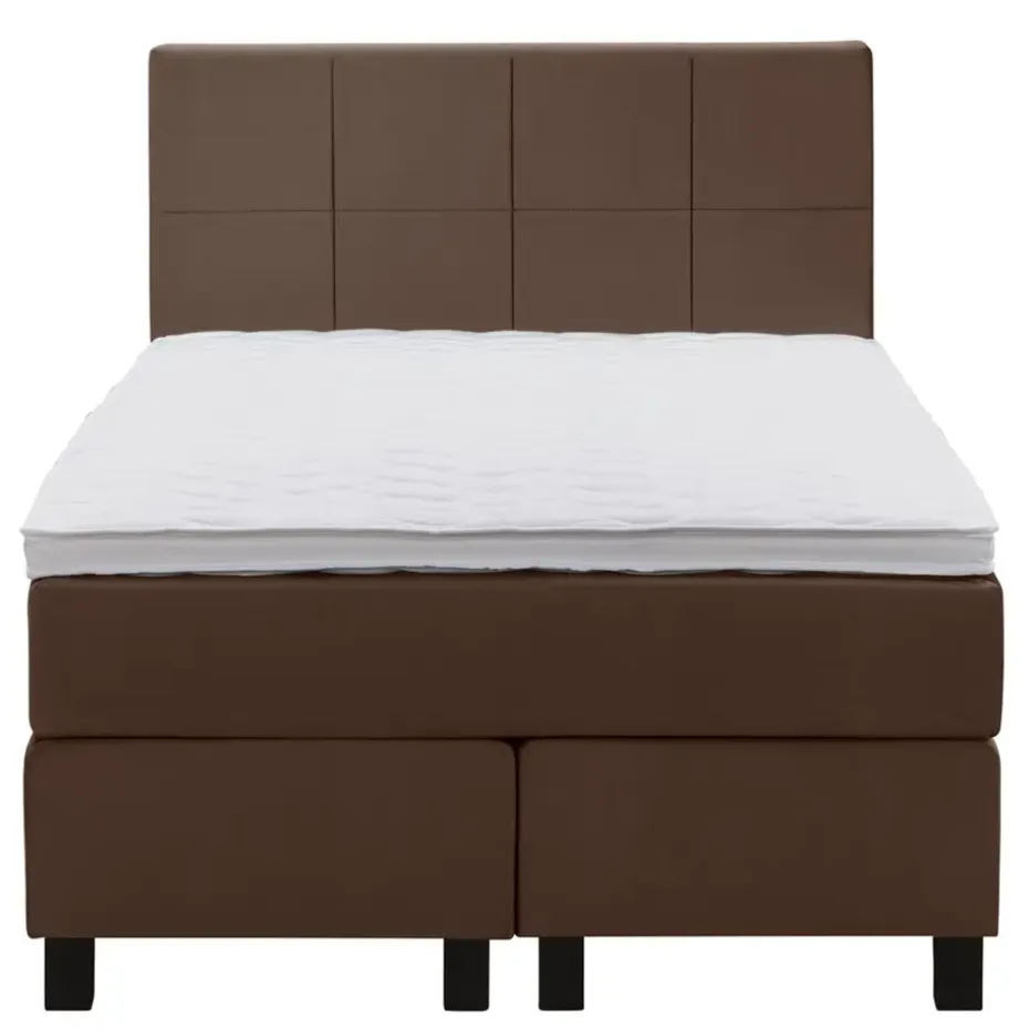 Boxspring Liv is een boxspring met een afmeting van 120×200 cm. Deze prachtige boxspring is bekleed met een velvet bruine stof en heeft een landelijke uitstraling met een geblokt hoofdbord. De Liv geblokt is uitgerust met een pocketveringmatras en daarnaast ook nog een koudschuim topdekmatras voor extra comfort. Het pocketveringmatras is omkeerbaar, bestaande uit zowel een medium- als een stevige kant. Hierdoor kun je zelf kiezen wat voor jou het meest comfortabel ligt.