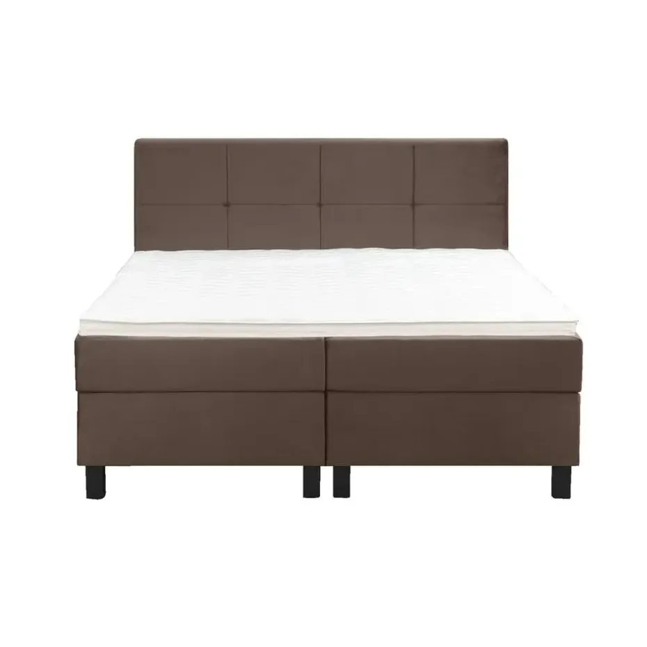 Boxspring Liv is een boxspring met een afmeting van 160×200 cm. Deze prachtige boxspring is bekleed met een velvet bruine stof en heeft een landelijke uitstraling met een geblokt hoofdbord. De Liv geblokt is uitgerust met twee pocketveringmatrassen en daarnaast ook nog een koudschuim topdekmatras voor extra comfort. Het pocketveringmatras is omkeerbaar, bestaande uit zowel een medium- als een stevige kant. Hierdoor kun je zelf kiezen wat voor jou het meest comfortabel ligt.