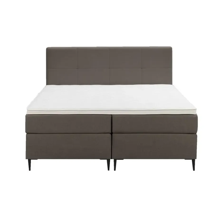 Boxspring Liv is een boxspring met een afmeting van 160×200 cm. Deze prachtige boxspring is bekleed met een grof geweven donkerbruine stof en heeft een landelijke uitstraling met een geblokt hoofdbord. De Liv geblokt is uitgerust met twee pocketveringmatrassen en daarnaast ook nog een koudschuim topdekmatras voor extra comfort. Het pocketveringmatras is omkeerbaar, bestaande uit zowel een medium- als een stevige kant. Hierdoor kun je zelf kiezen wat voor jou het meest comfortabel ligt.