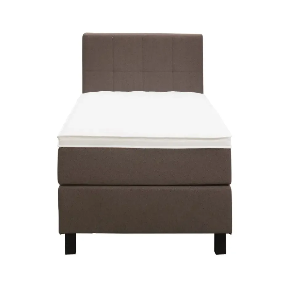 Boxspring Liv is een boxspring met een afmeting van 90×200 cm. Deze prachtige boxspring is bekleed met een grof geweven donkerbruine stof en heeft een landelijke uitstraling met een geblokt hoofdbord. De Liv geblokt is uitgerust met een pocketveringmatras en daarnaast ook nog een koudschuim topdekmatras voor extra comfort. Het pocketveringmatras is omkeerbaar, bestaande uit zowel een medium- als een stevige kant. Hierdoor kun je zelf kiezen wat voor jou het meest comfortabel ligt.