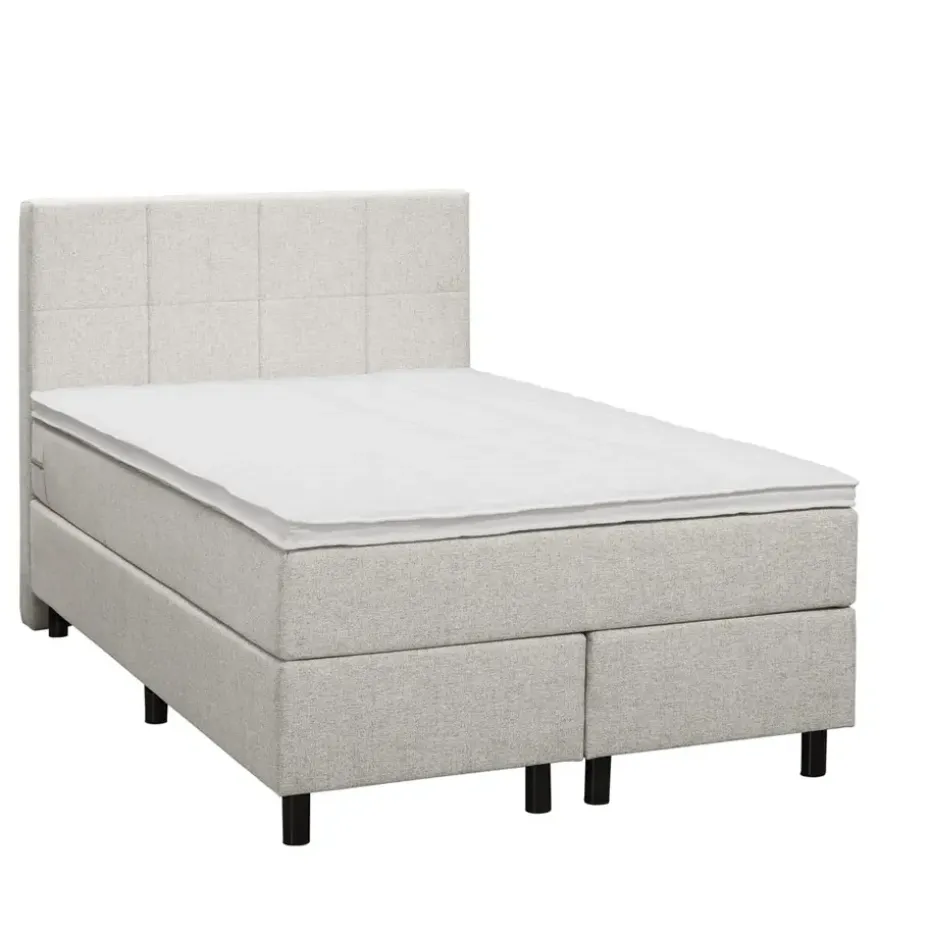 Boxspring Liv is een boxspring met een afmeting van 120×200 cm. Deze prachtige boxspring is bekleed met een fijn geweven ecru stof en heeft een landelijke uitstraling met een geblokt hoofdbord. De Liv geblokt is uitgerust met een pocketveringmatras en daarnaast ook nog een koudschuim topdekmatras voor extra comfort. Het pocketveringmatras is omkeerbaar, bestaande uit zowel een medium- als een stevige kant. Hierdoor kun je zelf kiezen wat voor jou het meest comfortabel ligt.