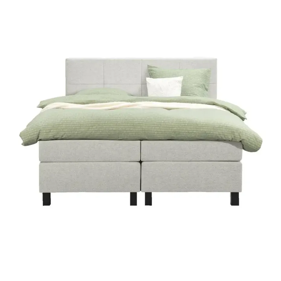 Boxspring Liv is een boxspring met een afmeting van 180×200 cm. Deze prachtige boxspring is bekleed met een fijn geweven ecru stof en heeft een landelijke uitstraling met een geblokt hoofdbord. De Liv geblokt is uitgerust met twee pocketveringmatrassen en daarnaast ook nog een koudschuim topdekmatras voor extra comfort. Het pocketveringmatras is omkeerbaar, bestaande uit zowel een medium- als een stevige kant. Hierdoor kun je zelf kiezen wat voor jou het meest comfortabel ligt.