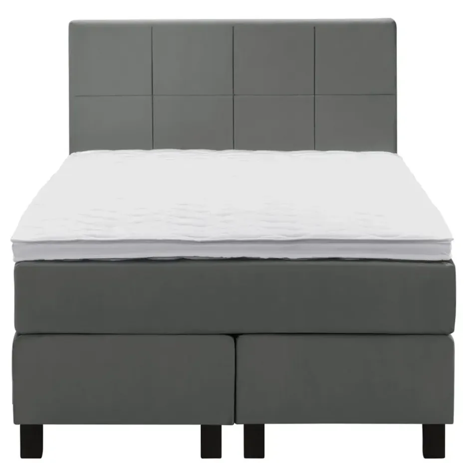 Boxspring Liv is een boxspring met een afmeting van 120×200 cm. Deze prachtige boxspring is bekleed met een velvet grijze stof en heeft een landelijke uitstraling met een geblokt hoofdbord. De Liv geblokt is uitgerust met een pocketveringmatras en daarnaast ook nog een koudschuim topdekmatras voor extra comfort. Het pocketveringmatras is omkeerbaar, bestaande uit zowel een medium- als een stevige kant. Hierdoor kun je zelf kiezen wat voor jou het meest comfortabel ligt.