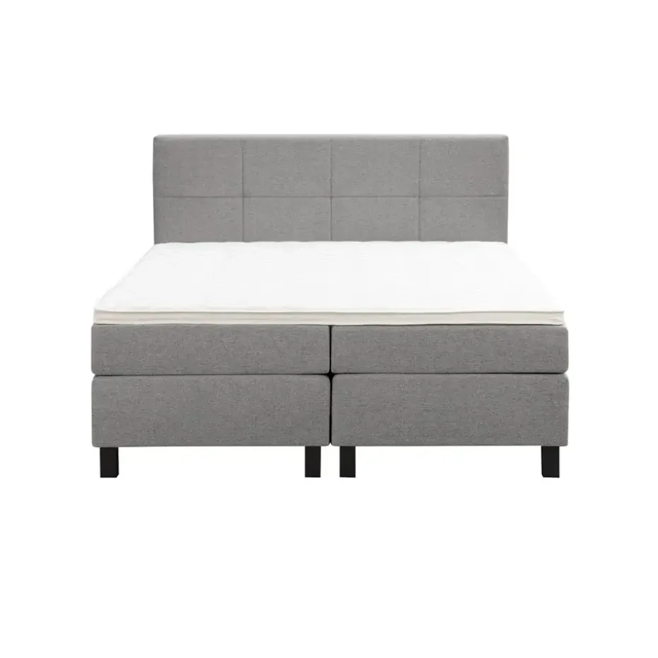 Boxspring Liv is een boxspring met een afmeting van 180×200 cm. Deze prachtige boxspring is bekleed met een fijn geweven lichtgrijze stof en heeft een landelijke uitstraling met een geblokt hoofdbord. De Liv geblokt is uitgerust met twee pocketveringmatrassen en daarnaast ook nog een koudschuim topdekmatras voor extra comfort. Het pocketveringmatras is omkeerbaar, bestaande uit zowel een medium- als een stevige kant. Hierdoor kun je zelf kiezen wat voor jou het meest comfortabel ligt.