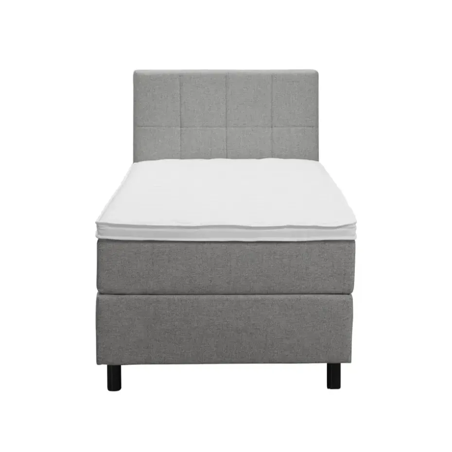 Boxspring Liv is een boxspring met een afmeting van 90×200 cm. Deze prachtige boxspring is bekleed met een fijn geweven lichtgrijze stof en heeft een landelijke uitstraling met een geblokt hoofdbord. De Liv geblokt is uitgerust met een pocketveringmatras en daarnaast ook nog een koudschuim topdekmatras voor extra comfort. Het pocketveringmatras is omkeerbaar, bestaande uit zowel een medium- als een stevige kant. Hierdoor kun je zelf kiezen wat voor jou het meest comfortabel ligt.